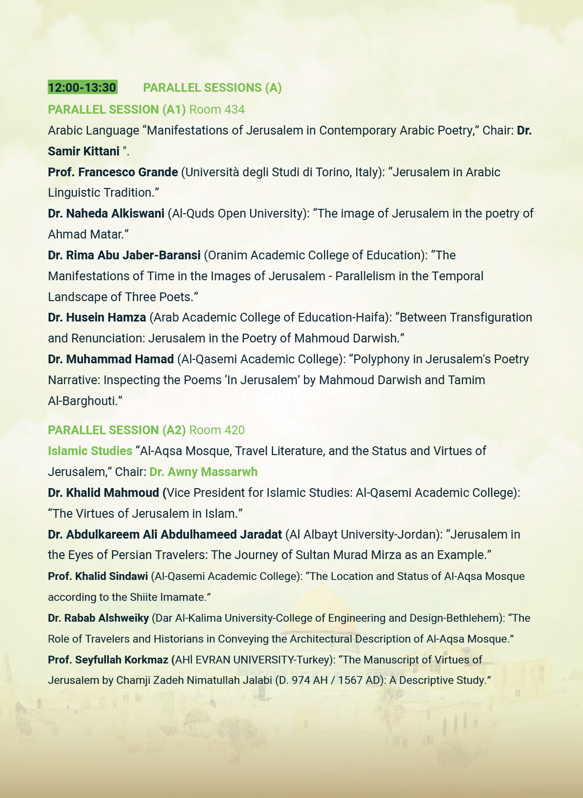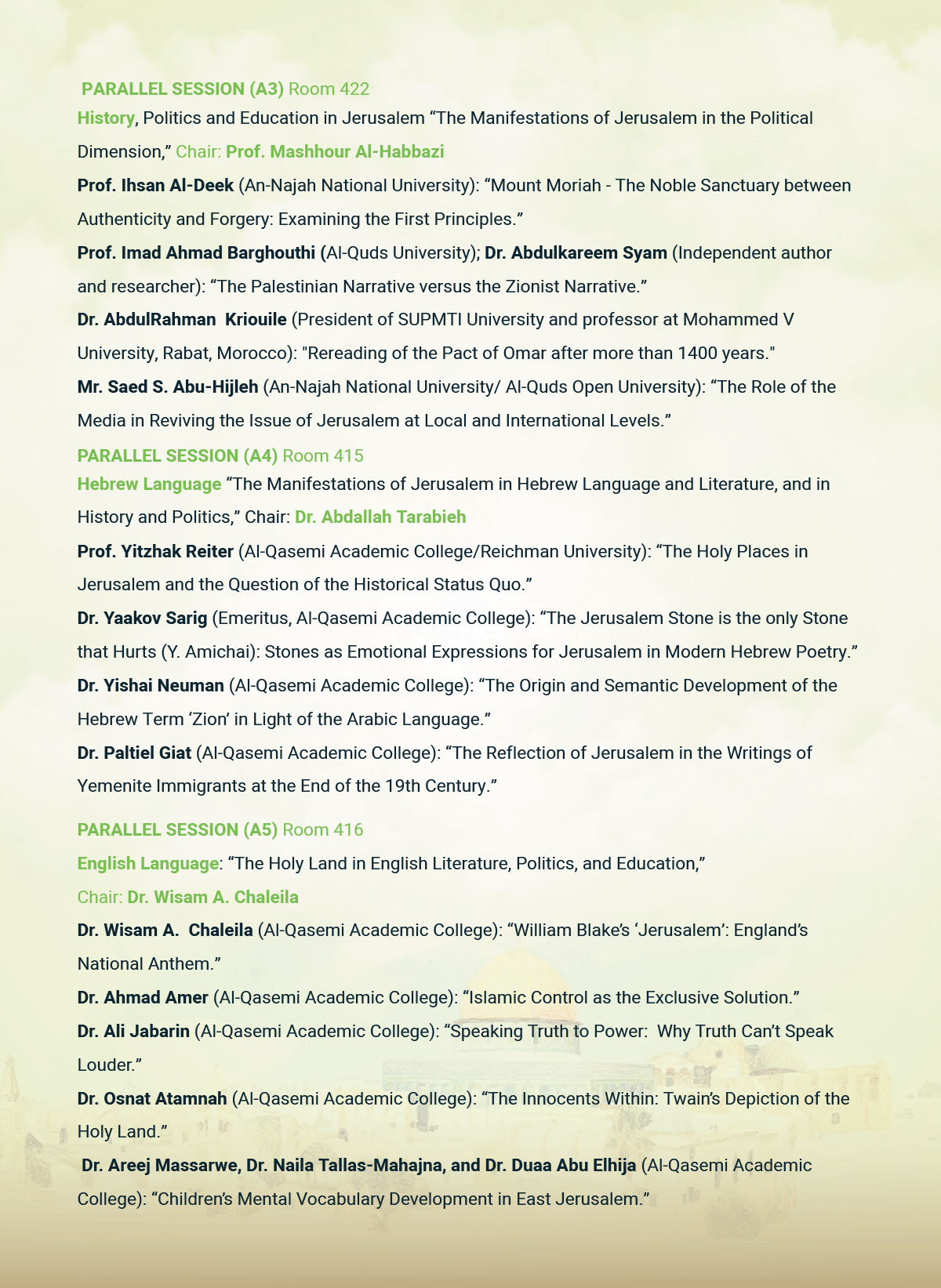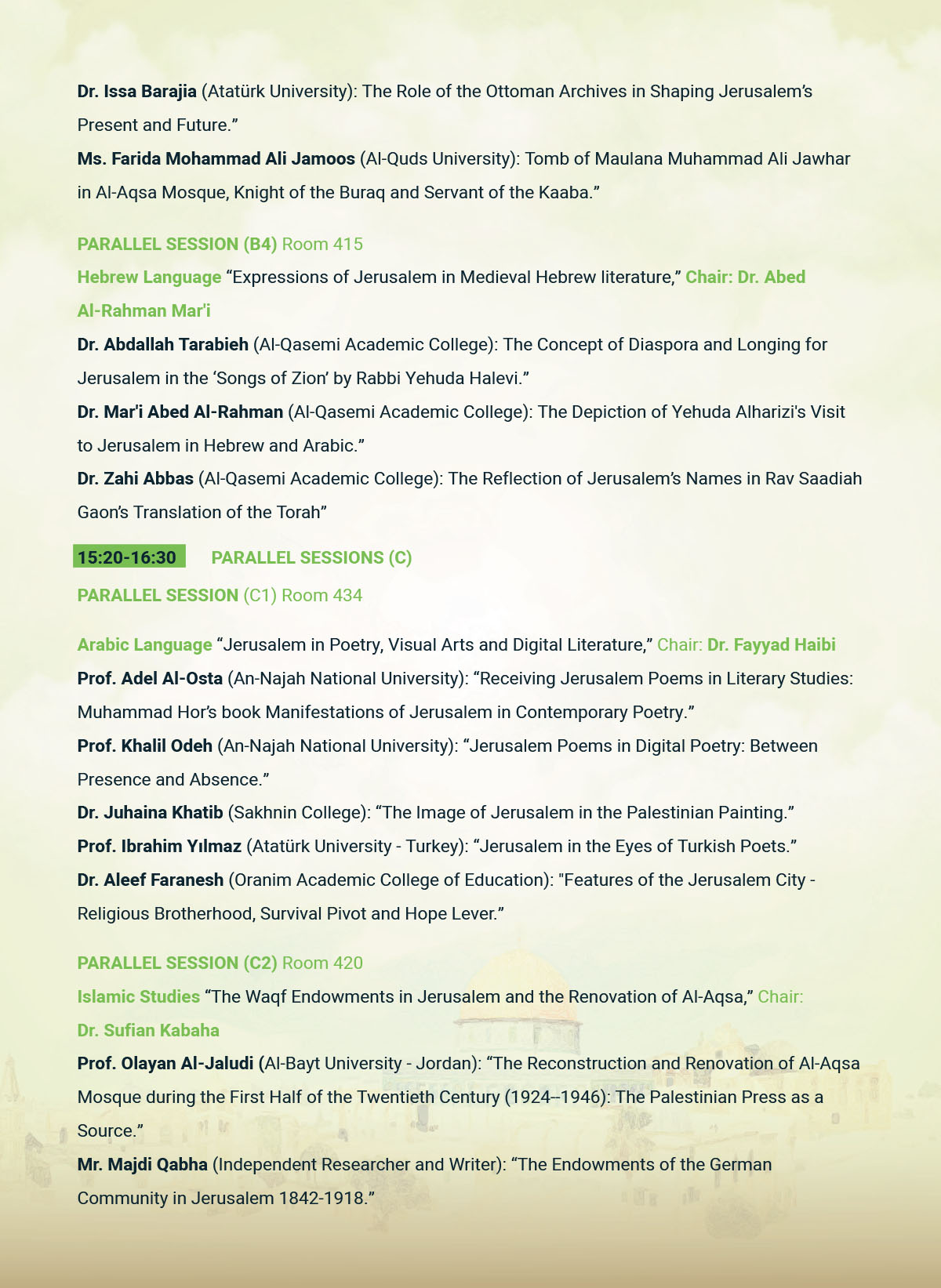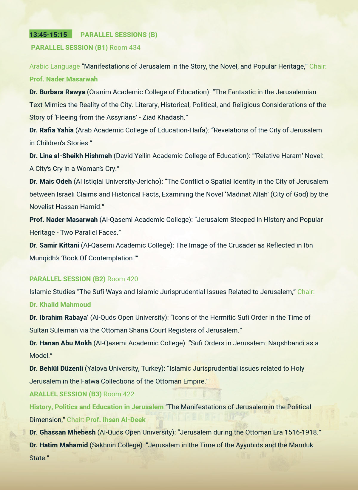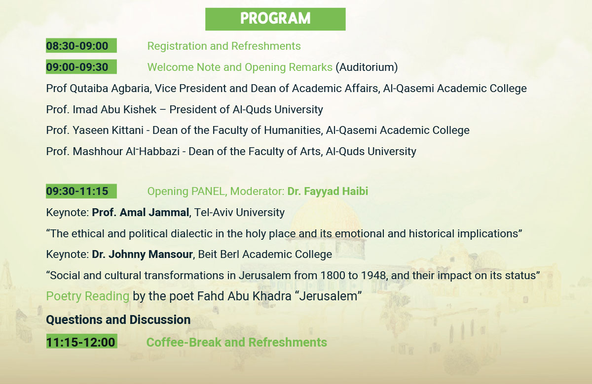 Conference Program: “Manifestations of Jerusalem in Literature, History, Religion, and Politics”